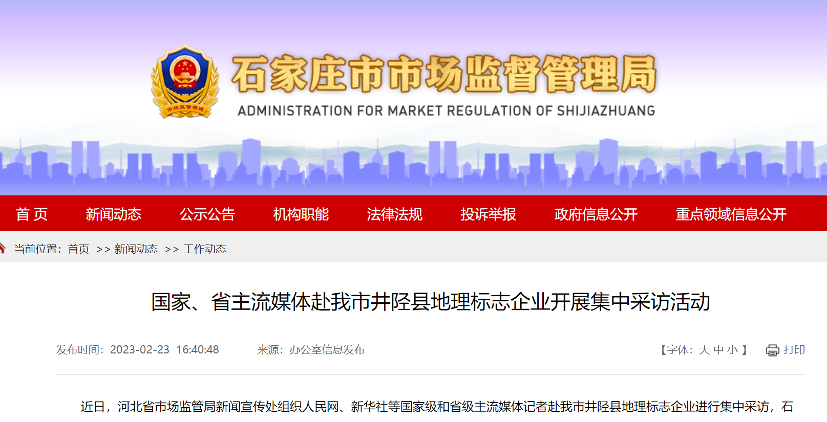 2023-10-27 23:04:09近日,河北省市场监管局新闻宣传处组织人民网、新华社等国家级和省级主流媒体记者赴我市井陉县地理标志企业进行集中采访,石家庄市市场监管局新闻宣传科、知识产权管理科、井陉县市场监管局参加了采访活动。在我市地...