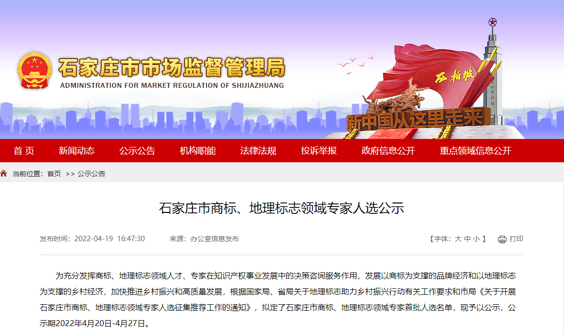 2022-11-20 01:41:09为充分发挥商标、地理标志领域人才、专家在知识产权事业发展中的决策咨询服务作用,发展以商标为支撑的品牌经济和以地理标志为支撑的乡村经济,加快推进乡村振兴和高质量发展,根据国家局、省局关于地理标志助力乡村...
